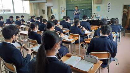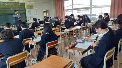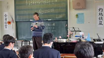 2年生の音楽はアルトリコーダーです。実技テストの課題曲、1.喜びのうた 2.オーラ リー 3.アニーローリーの練習をしています。