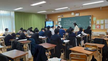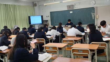 3年生の数学は、少人数クラスです。教室と数学学習室に分かれて授業をしています。標本調査の単元を学習しています。