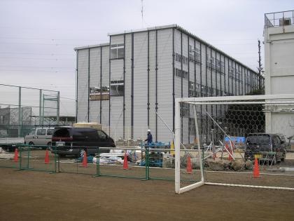 学校南側に建設中だった仮設(プレハブ)校舎が完成しました。