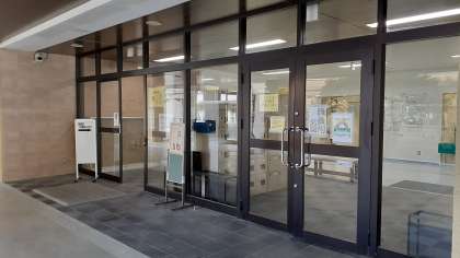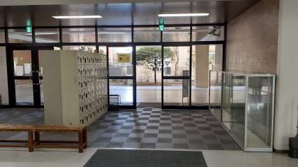 来賓用の玄関の位置を変更致しましたので、お知らせ致します。不審者などの防犯対策のため、玄関に向かって左側を来賓用の玄関に変更致しました。受付となっております主事室の正面となっております。来校の際は、お間違えのないようにご注意ください。