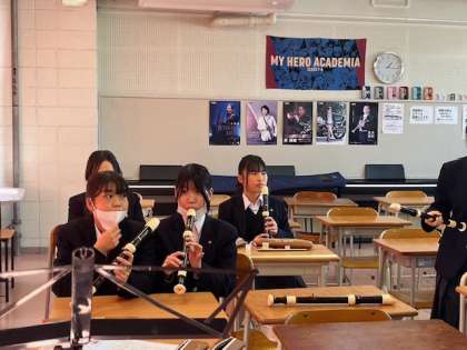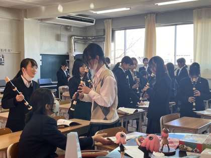 昼休みに課題のリコーダーテストを受けに来た人たちです。みんな頑張っています。授業以外で1日一回受けることができます。3つの課題が出来ると合格になります。