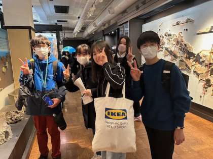 科学博物館内です。隕石を興味深く観察してます。