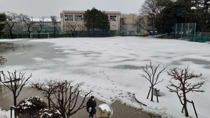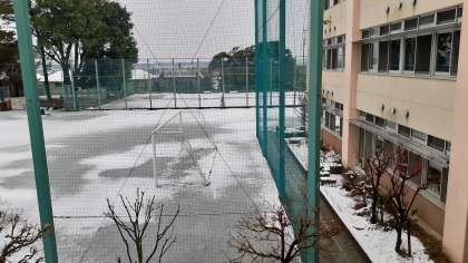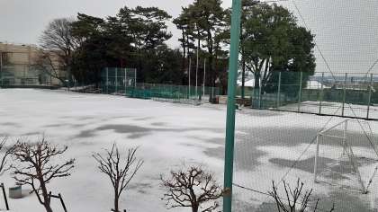雪化粧した今朝の校庭の様子です。
