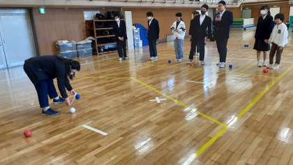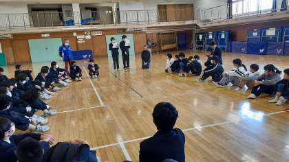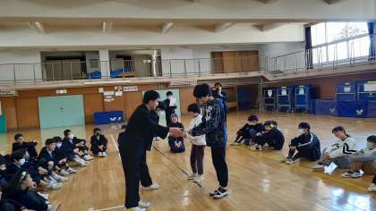各グループ、応援にも力が入ります。和気あいあいと楽しい交流会でした。最後に、中学生が用意した参加賞を小学生に贈呈しました。