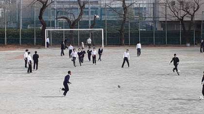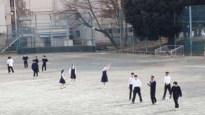 今日はとても暖かいので、昼休みに校庭でボール遊びをする姿がたくさん見られます。サッカーやバレーボールなど楽しんでいます。