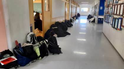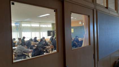 今日から学年末考査が始まりました。一時間目は社会科です。三年生の様子です。