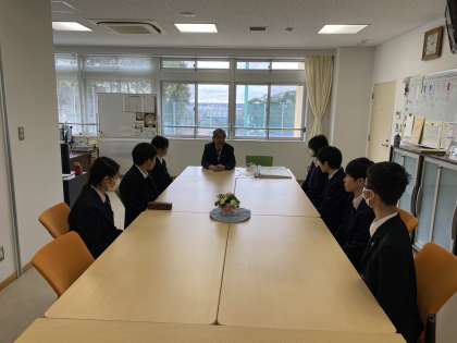 3月6日(水)の昼休み校長室にて、校長先生と生徒会役員との懇談会が行われました。
