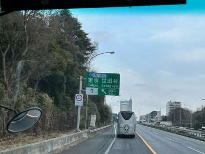 3年DEF組は高速道路を降り、もうすぐ中学校に着きます。