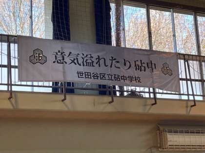 体育館にPTAより寄贈していただいた横断幕が飾られています。