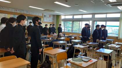 三年生の四時間目は、卒業式の歌の練習をパートごとに分かれて練習しています。綺麗な歌声が廊下に響いています。