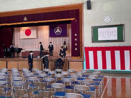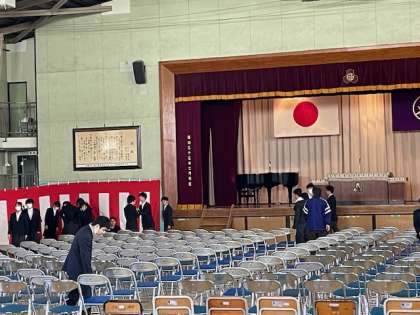 明日の卒業式に向けて会場準備が進められています。