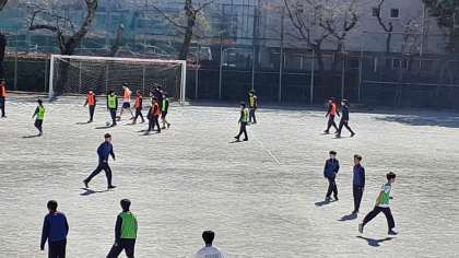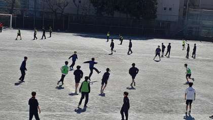 今日は一年生が球技大会です。前半は男子は運動場でサッカーをしています。