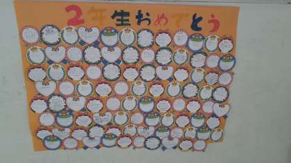 新二年生の下駄箱には、昨年度卒業生よりメッセージカードが掲示されています。登下校の時などご覧ください。