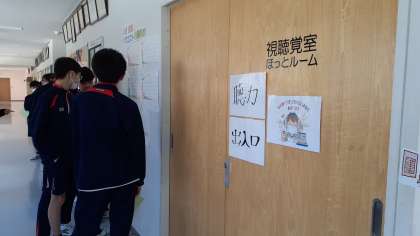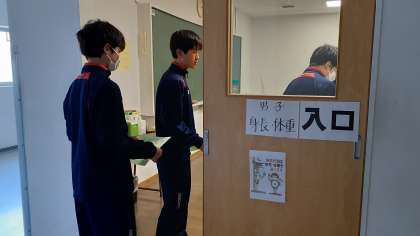 3年生は身体計測をしています。身長、体重、視力、聴力など計測します。