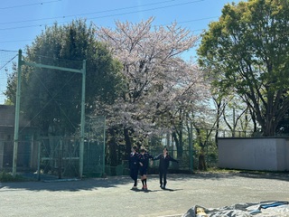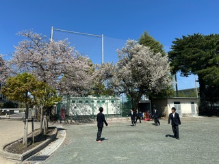 今日は晴れて暖かくなりました。昼休みには、桜の咲く校庭で遊び生徒たちの姿があちらこちらで見られました。