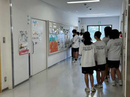 今日の午前中は、2年生が内科検診をしています。保健室の前で順番を待っているところです。