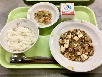 そして、豆腐とえびのうま煮はご飯にかけて食べてもいいし、おかずとして交互に食べてもいい味になっています。みんなが納得できるくらい、ご飯にかけて食べる前提の「強い味」にはしていません。悪く言えば中途半端ですが、大皿に1点盛りができる、今の砧中の中では珍しい料理です。その分、いろんな食材を使うことができ、多めに作ってもお皿に盛りきれるので、この1品だけで栄養がかなり取れます!