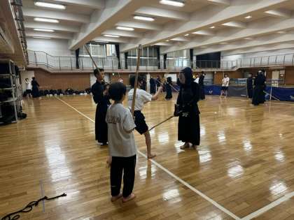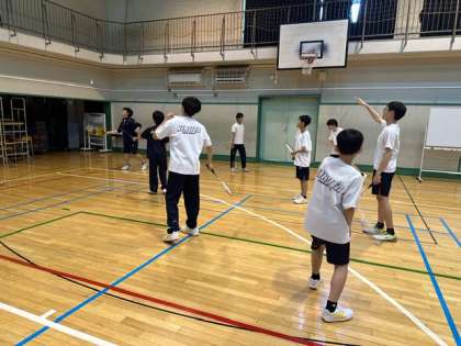 剣道部とバドミントン部の仮入部の様子です。上級生が個別に教えている姿が見られました。