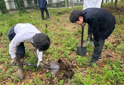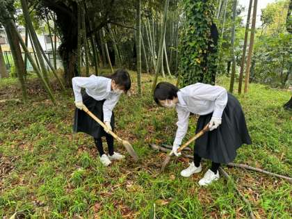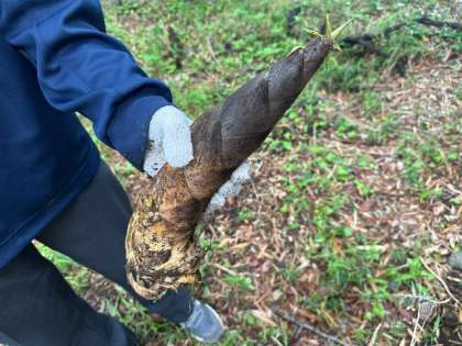 今日の農業部は、南門横の竹藪で竹の子掘りをしています。慣れている生徒も初めての生徒も、竹の子の芽を探して掘り進めていきます。次々と収穫出来ていました。