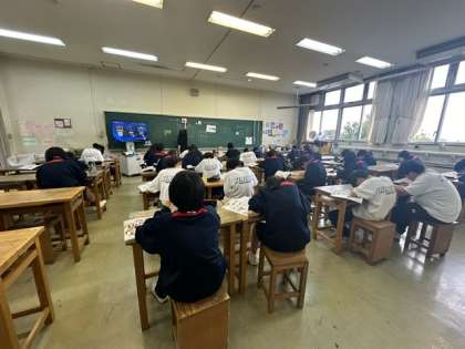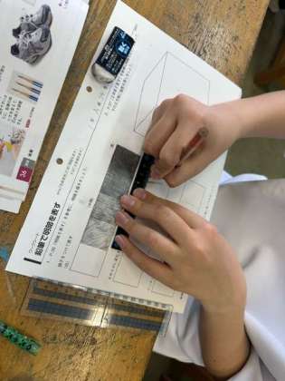 1年生の美術は、「鉛筆で明暗を表す」という課題をしています。プリントの枠の中を、鉛筆で濃淡をつけて塗っていきます。