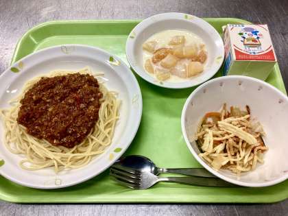 あっという間に4月が終わり、今日から5月がスタートです。今日のメニューは、今年度初のスパゲティです!