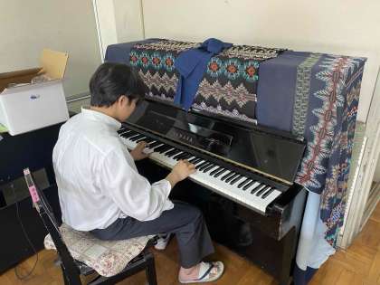 校庭で遊んだり、ピアノを弾いたり。