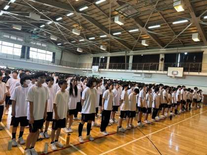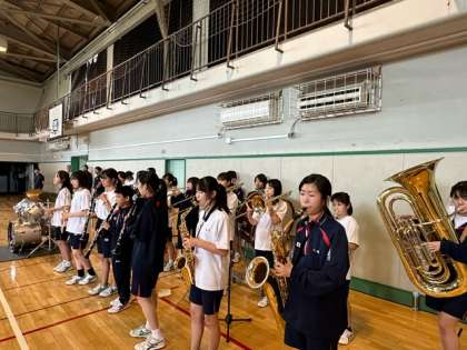 砧中学校からは吹奏楽部の伴奏による校歌をプレゼントしました。全校生徒の歌声が体育館に響き渡ります。