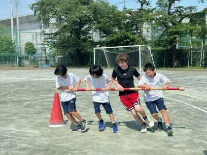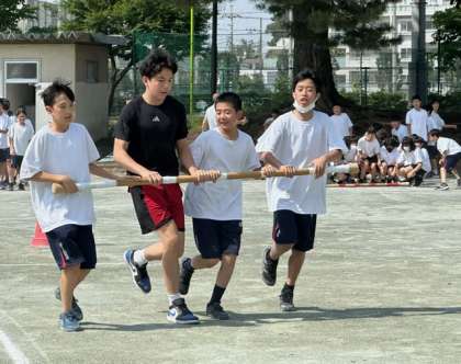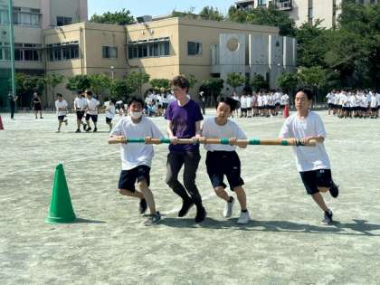 「台風の目」の練習が始まりました。マウントテイバー校の生徒たちは、各クラスに1名ずつ入って、参加します。