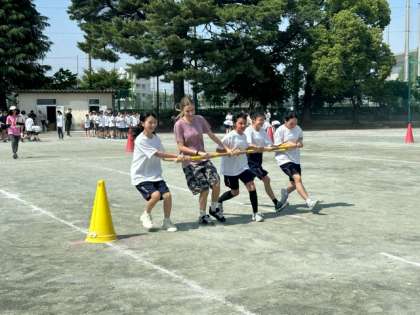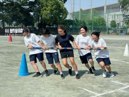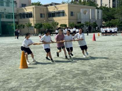 「台風の目」は、走る生徒も待っている生徒も一致団結する競技です。各クラス、声援や指示する声など、大きな声が飛び交っています。