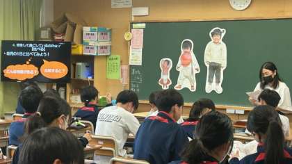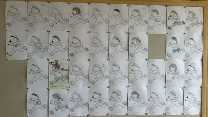 幼児の学習です。工夫していますね。廊下の掲示板です。