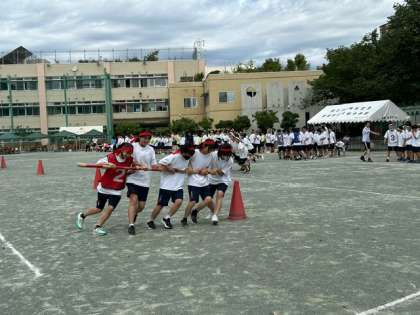 1年生学年種目「台風の目」は全員練習しました。どのクラスも協力して頑張っています。