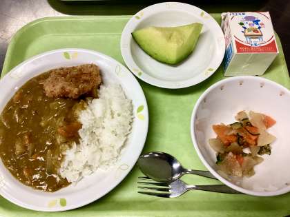 本来スポーツをする前は、脂っこい食品は控えるべきです。脂は胃に長くとどまるのでお腹が重くなるだけでなく、消化吸収されてエネルギーになるまでに時間がかかるためです。しかし、例えば部活の「県大会」や「関東大会」の出場がかかっているというわけではなく、あくまで学校行事としての、みんなの大切な思い出になるであろう運動会です。ここは気持ちを盛り上げることを目的として、カツカレーを選びました。私たちの気持ち、生徒たちに届いてくれたら嬉しいです!ちなみに、明日の給食は食べやすく、配りやすく、油もそれほど多くは使わない物を選んでおります。