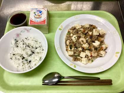 以上で、配る料理は3品。食器は2つ!私が知り得るレシピの中で、これ以上運動会の日に最適なメニューはないと思います。カレーとは違って脂っこくなく、栄養豊富な豆腐がメインなので、お腹に優しくスムーズに栄養補給もできると思います!この料理に、私たち給食室チームの応援の気持ちをたくさん込めました!
