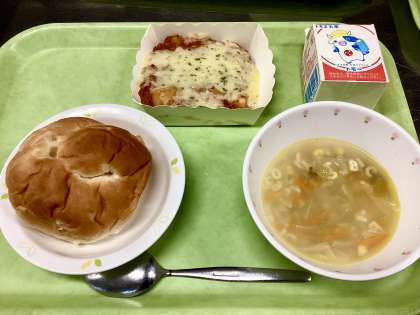 私も忙しい身になってみて、このパンとグラタンとスープというメニューについて、「とても助かる!」と実感しました。この組み合わせの売りは、「配りやすい・食べやすい・片付けやすい」なので、ここぞという日に出しています。きっと生徒たちも、余裕をもって味わって食べて、下校の準備ができたと思います。