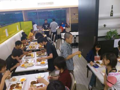 皆で夕飯です。本日のメニューは中華バイキング。子ども達は思い思いのものをお皿に盛り、食べていました。