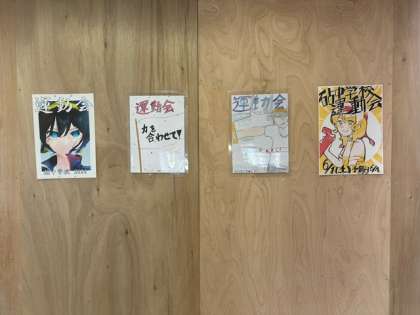 イラスト部で描いた運動会のポスターを、美術室の前の廊下に掲示しています。どうぞご覧ください。