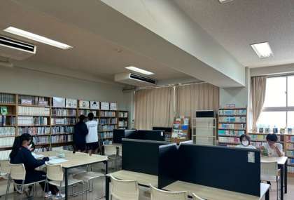 涼しい図書館で昼休みを過ごす生徒たちも見られます。