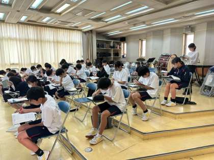 1年生の音楽では、秋の合唱コンクールの課題曲の候補曲を聴いています。9曲ある候補曲を順に聴いて感じたことを記録しています。