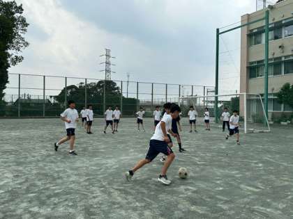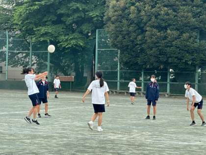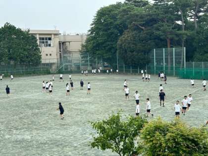 今日の昼休みは、たくさんの生徒が校庭でボール遊びをしています。