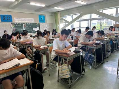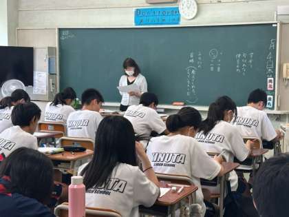 2年生の国語は、短歌を学習しています。全員で朗読しているところです。