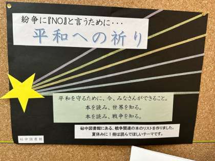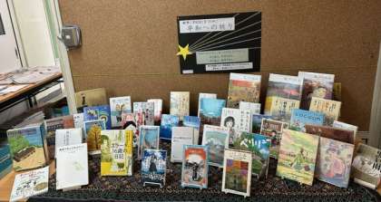 図書館では、戦争に関連する書籍を集めて展示しています。夏休みに戦争について考える機会を持てるといいですね。借りることも出来ますので是非ご覧ください。