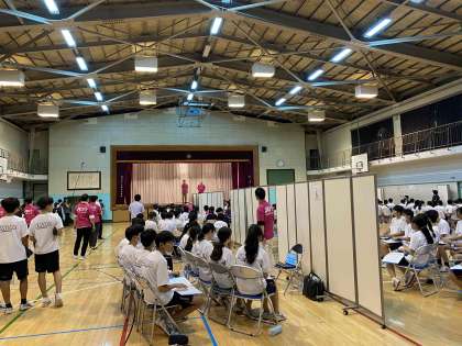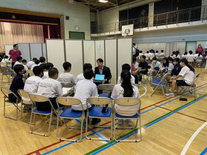 東京青年会議所 世田谷区委員会の皆さんにご来校いただき、様々な職業や働くことについてなどのお話をしていただいてます。生徒の皆さんも真剣です!