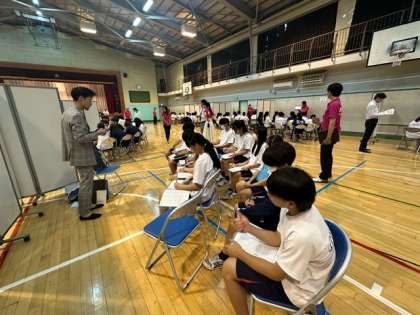 今日の5、6時間目は世田谷区の青年商工会議所の方々と連携しての職業講和の授業です。多種多様な分野の職業の方々が来校して講和をして下さっています。21ブースに分かれて、10人程度のグループで4つのブースをまわります。