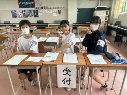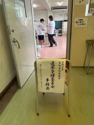 本日から昼休みと放課後に生徒会役員の立候補受付を開始しています。音楽室を選挙管理委員会事務局として設えています。初日の昼休みは三人の立候補者が受付を行いました。