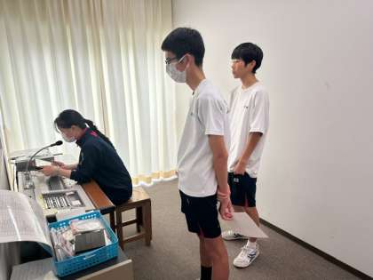 今朝は放送室より、生徒会朝礼です。生徒会役員や保健係より話がありました。