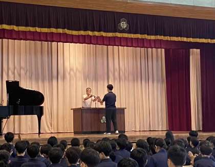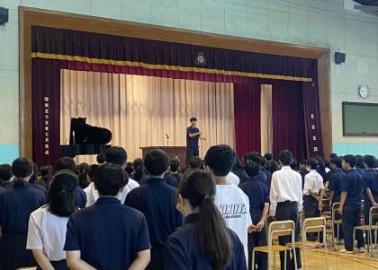 校長先生のお話、校歌斉唱、部活動大会等の表彰がありました。