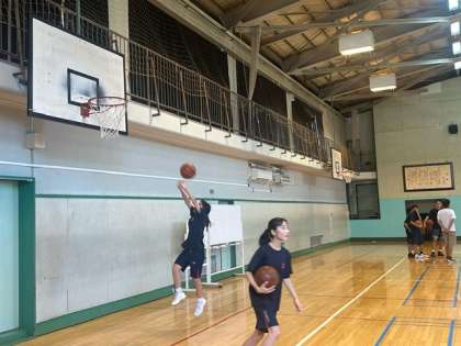 今日の午前中、体育館ではバスケットボール部が活動しています。
