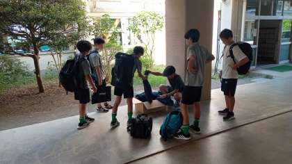サッカー部では、試合に備えて新しいユニフォームが配布されています。