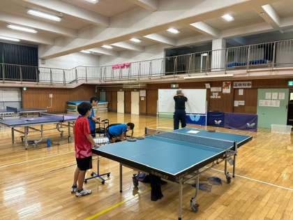 暑い日が続きますが、卓球部は涼しい格技室で熱く活動をしています。コーチの講義を熱心に聞いているところです。