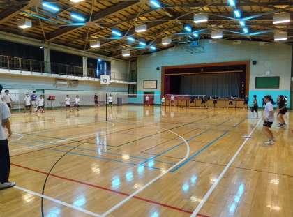 バドミントン部、卓球部、剣道部、テニス部が元気に練習に取り組んでいました。雨が降り始めたので、テニス部は校内で待機しています。
